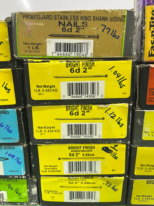 Lot of 12 Boxes – Assorted Nails & Screws with Weights Labeled