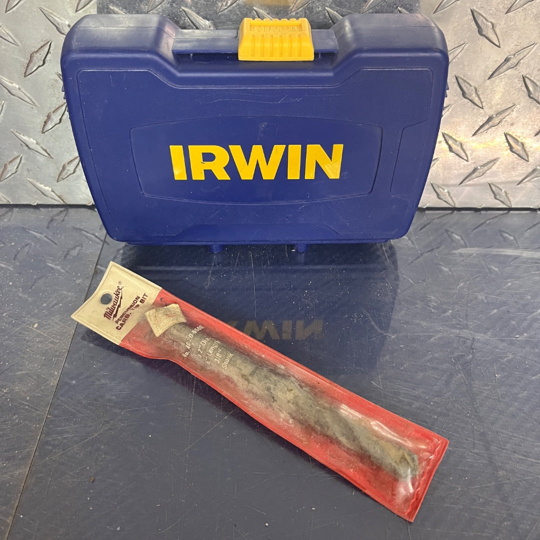 Irwin 6 pieces Woodboring Tri-flute Drill Bit Set PLUS 1 Milwaukee Percussion Carbide tipped drill bit 1/2" Diameter, 6" Length, 3/8" Shank