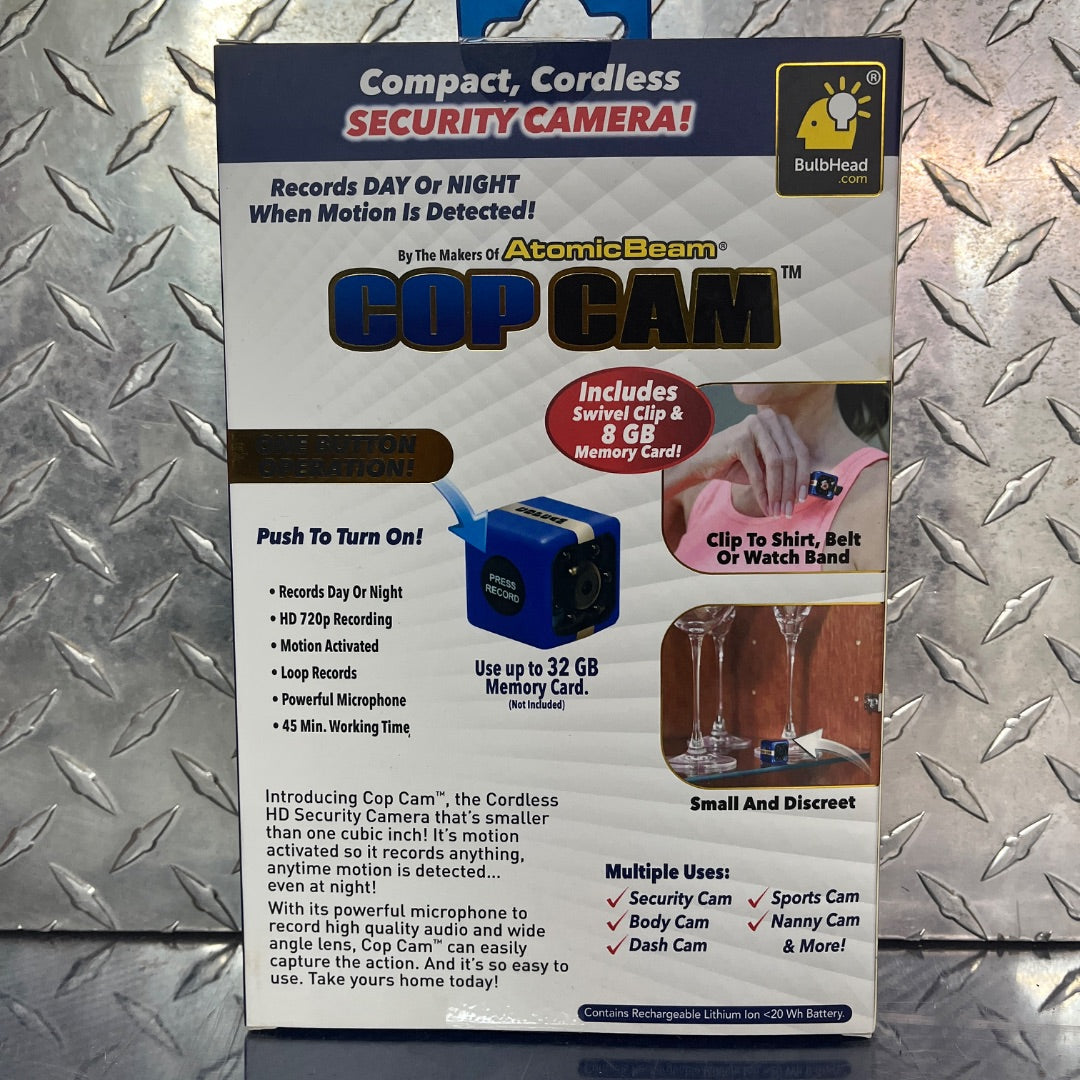 Cop Cam mini security camera, motion activated hidden cam, wireless HD camera with audio, mini spy cam with night vision, Cop Cam as seen on TV, hidden security camera for home, indoor surveillance camera, portable wireless nanny cam.