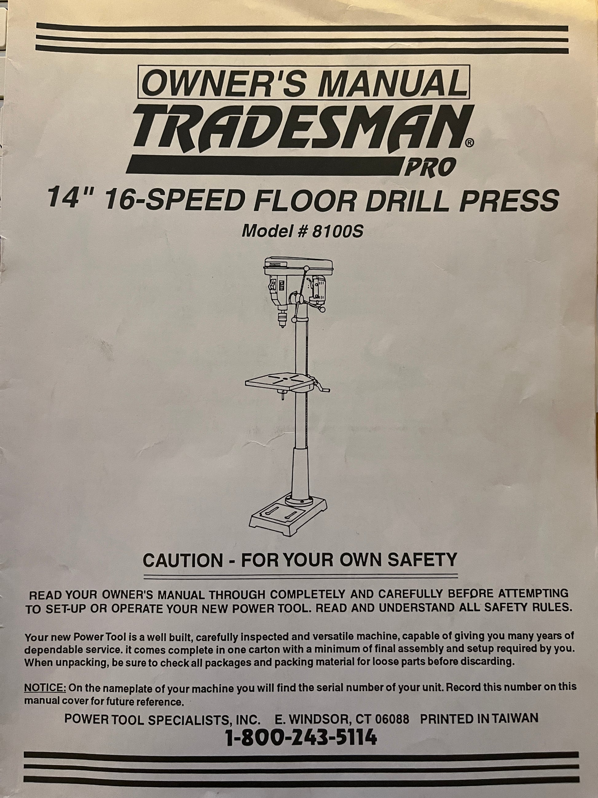 Tradesman Pro 14" 16-Speed Floor Drill Press – Model #8100S