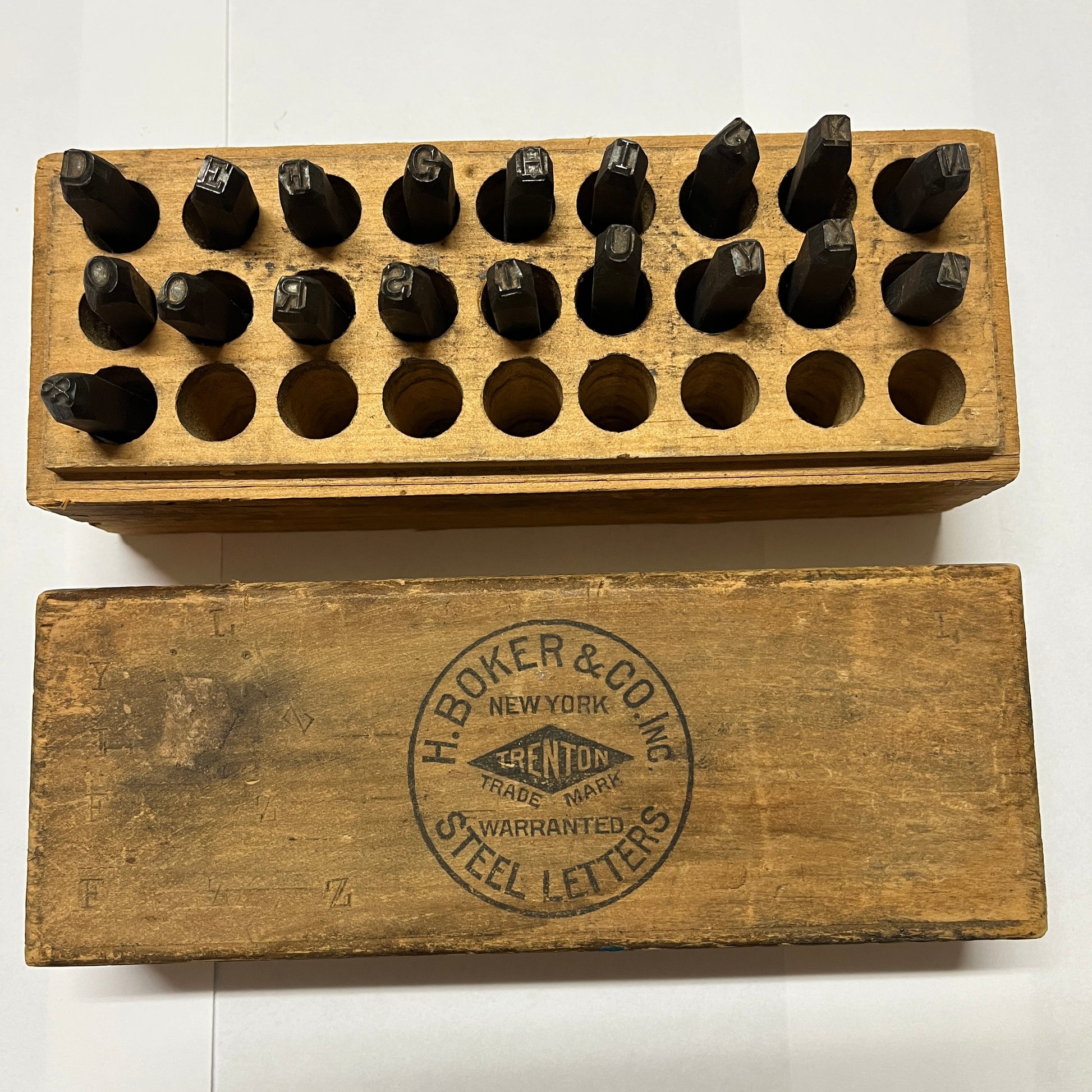 Vintage H. Boker & Co. Steel Letter Stamp Set – 19 Piece Partial Alphabet Punches with Wooden Box